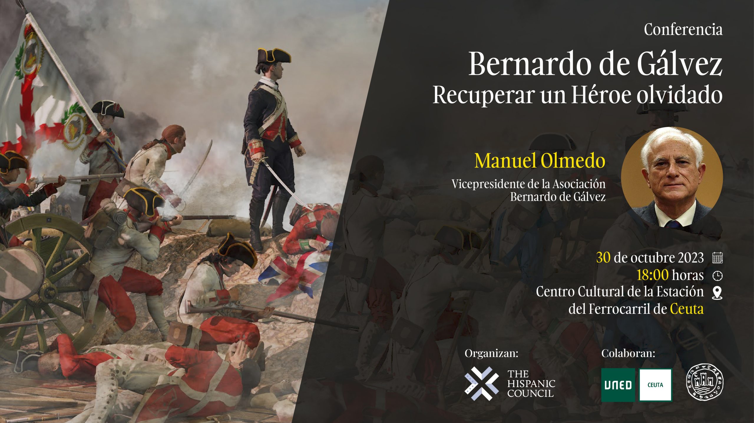 La conferencia, titulada Bernardo de Gálvez, recuperar un Héroe olvidado, tendrá lugar el próximo lunes 30 de octubre, a las 18:00 horas, en el nuevo centro cultural situado en la Antigua Estación del Ferrocarril de Ceuta. Con la colaboración de UNED Ceuta y del Instituto de Estudios Ceutíes, Olmedo dará a conocer la excelsa labor de Bernardo de Gálvez y sus hombres durante la independencia de Estados Unidos.